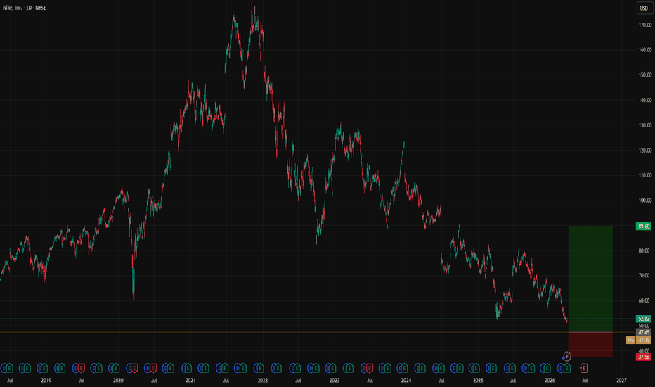 Early Turnaround Opportunity with Margin Recovery UpsideNike, Inc. is currently trading around $47-48, near multi-year lows, despite generating approximately $46.5B in TTM revenue, highlighting a clear disconnect between price and scale.